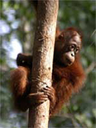 Facing a bleak future: this baby orang-utan is losing her home to palm oil plantations (Baby Orangutan. © Orangutan Foundation)