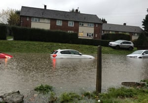 Cars under flood water on Whitchurch Lane in Hartcliffe, Bristol. Photograph: Lee Gitsham/PA